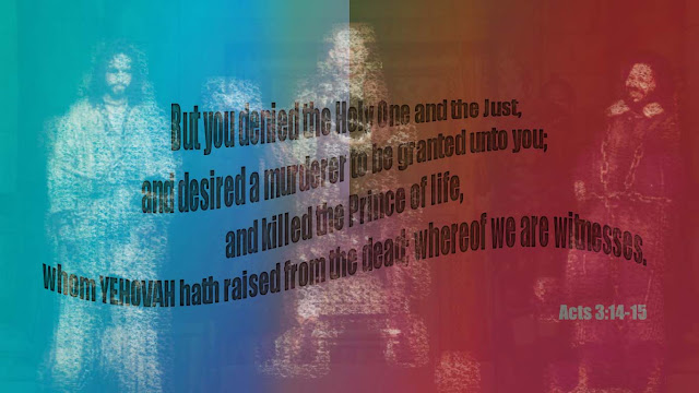 But you denied the Holy One and the Just, and desired a murderer to be granted unto you; and killed the Prince of life, whom YEHOVAH hath raised from the dead; whereof we are witnesses. And his name through faith in his name hath made this man strong, whom you see and know: yea, the faith which is by him hath given him this perfect soundness in the presence of you all.
